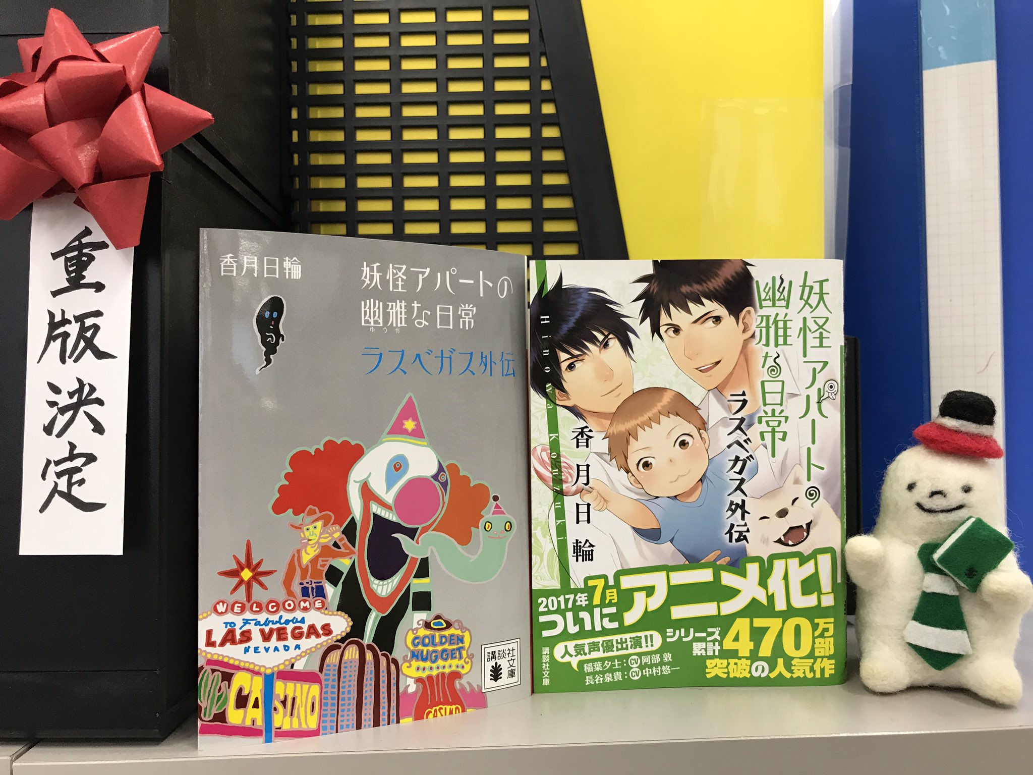 講談社文庫 5月刊 香月日輪さんの 妖怪アパートの幽雅な日常 ラスベガス外伝 の重版が決まりました おめでとうございます 妖アパ 主要人物の後日談が収録された ファン必読の一冊 書店さまには アニメフル帯バージョンが並んでいます フル帯の